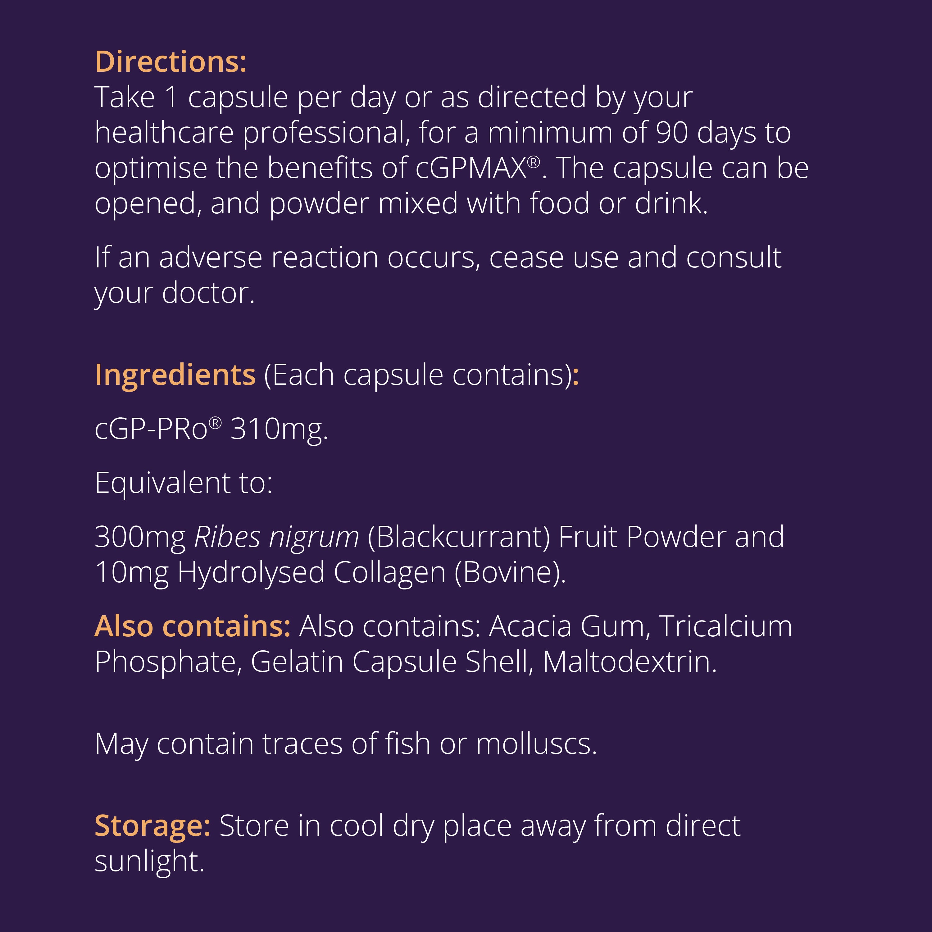 Backed by over 30 years of research, cGP-Pro® is clinically tested, patented, and naturally sourced from New Zealand blackcurrants and collagen peptides. Its scientifically proven mechanism helps regulate Insulin-like Growth Factor-1 (IGF-1), a key hormone for growth, repair, and cellular health. By normalising IGF-1 activity, cGP-Pro® supports strong blood flow, nourishes the brain, and helps maintain inner balance as you age.